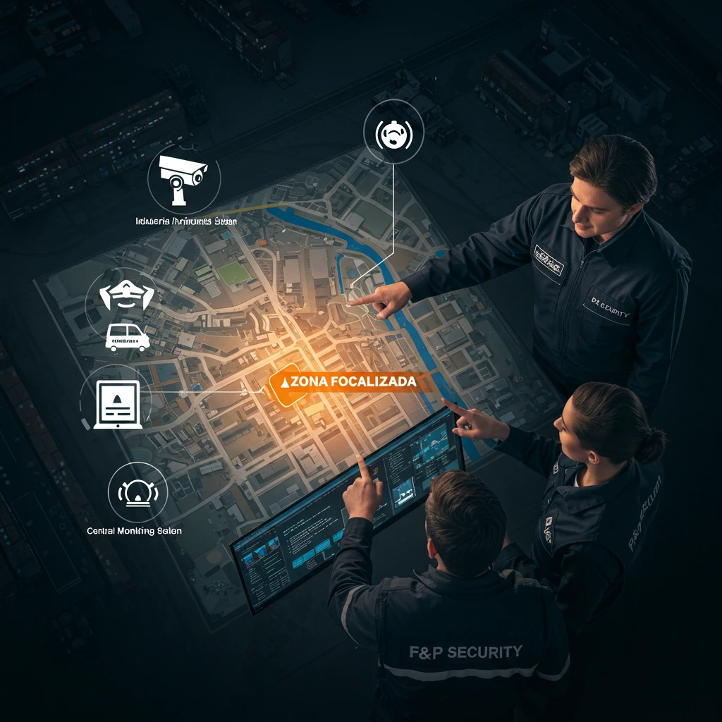 Focalizamos nuestro servicio exclusivamente en el barrio empresarial para ofrecer vigilancia más efectiva, cobertura permanente y conocimiento profundo del entorno operativo.